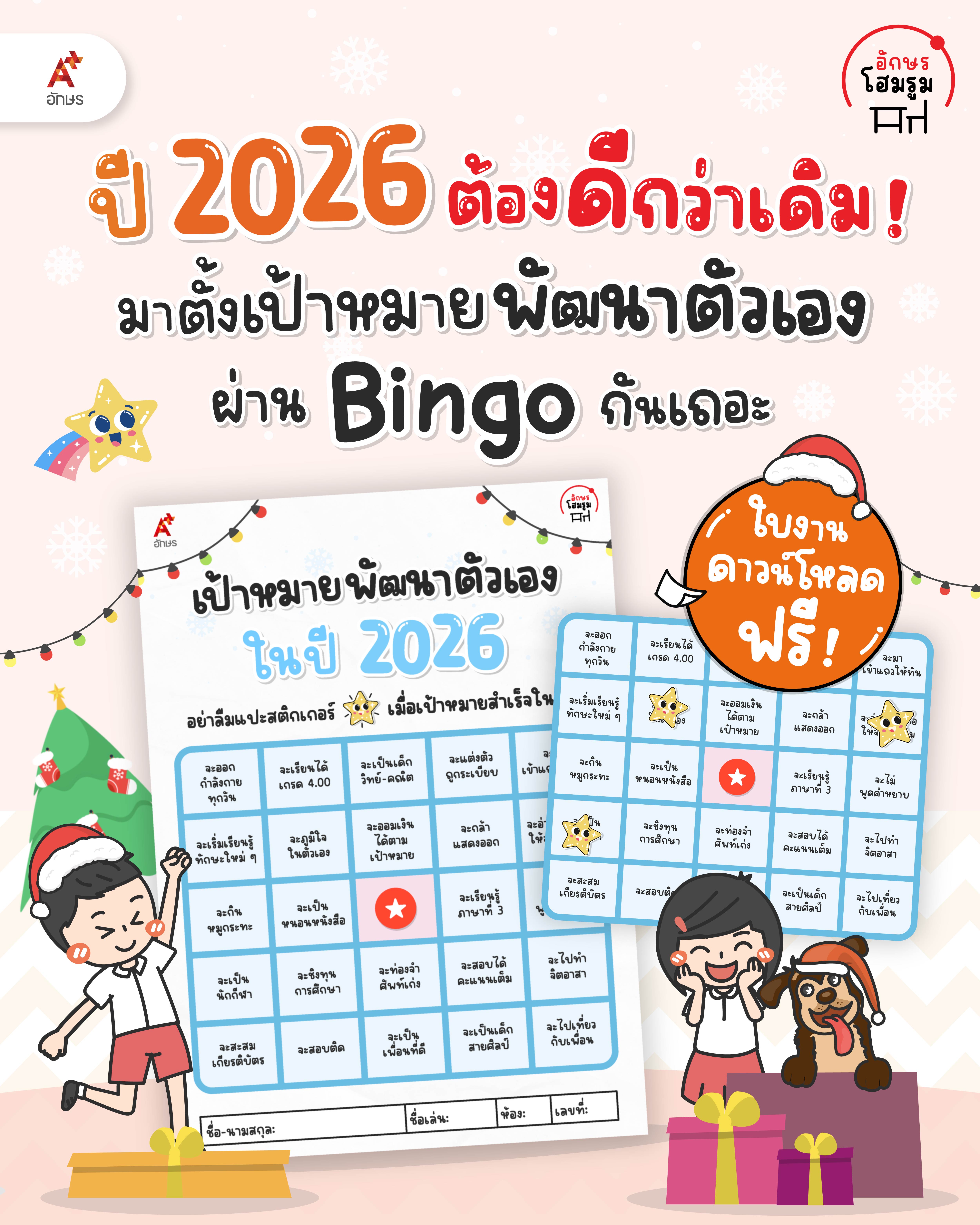 โหลดฟรี!! ใบงาน Bingo ชวนผู้เรียนวางแผนเป้าหมายปี 2026 ฝึกทักษะการคิด วางแผนอนาคต และก้าวไปสู่ความสำเร็จตามเป้าหมายที่ตั้งใจไว้